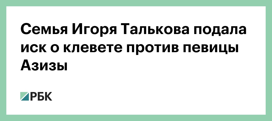 По ее словам, речь идет о выпуске телепередачи «Первого канала» «На самом деле» от 17 июня 2019 года. Певица Азиза обвинила Талькова-старшего в сутенерстве, тем самым публично оклеветав покойного музыканта, уточнила защитник.