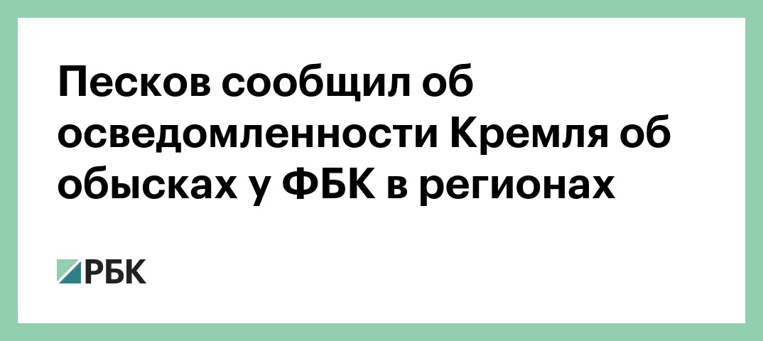 Песков сообщил об осведомленности Кремля об обысках у ФБК в регионах