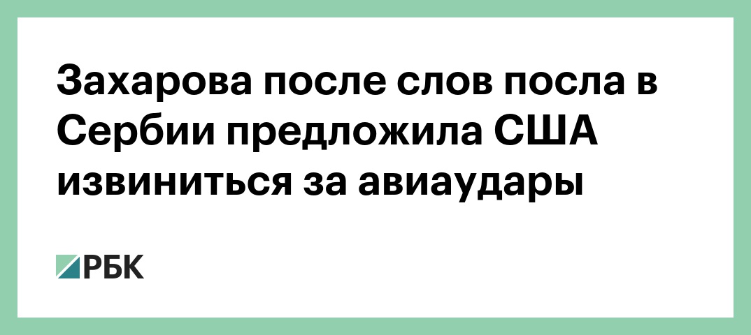 Захарова после слов посла в Сербии предложила США извиниться за авиаудары