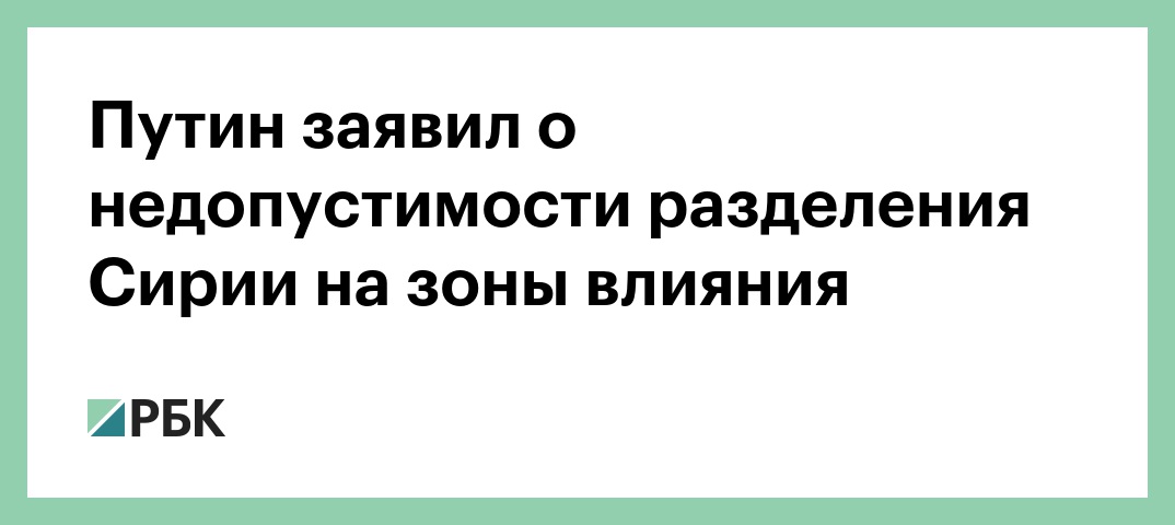 «Проблемы безопасности в этом районе (на северо-востоке Сирии. — РБК), как и в других частях страны, должны решаться исключительно на принципах сохранения суверенитета и территориальной целостности. Исходим из того, что недопустимо делить Сирию на зоны влияния», — сказал Путин.