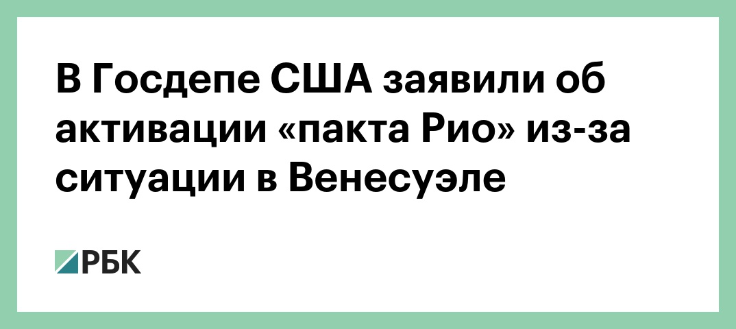 «США и наши партнеры прибегли к Межамериканскому договору о взаимной помощи («пакту Рио»), он упростит дальнейшие коллективные действия по борьбе с угрозой, которую представляет бывший режим Николаса Мадуро (в США легитимным главой страны считают Хуана Гуаидо) для народа Венесуэлы и региона», — говорится в тексте заявления.