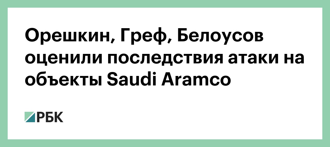 Министр экономического развития Максим Орешкин, глава Сбербанка Герман Греф и помощник президента России Андрей Белоусов считают, что атаки дронов на инфраструктуру Saudi Aramco не окажут существенного влияния на рынок нефти, передает ТАСС.
