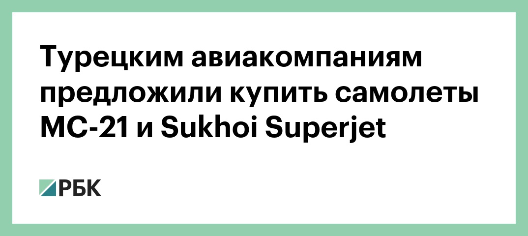 Объединенная авиастроительная корпорация (ОАК) предложила турецким авиакомпаниям приобрести самолеты МС-21 и Superjet 100. Об этом сообщили РБК в пресс-службе корпорации.