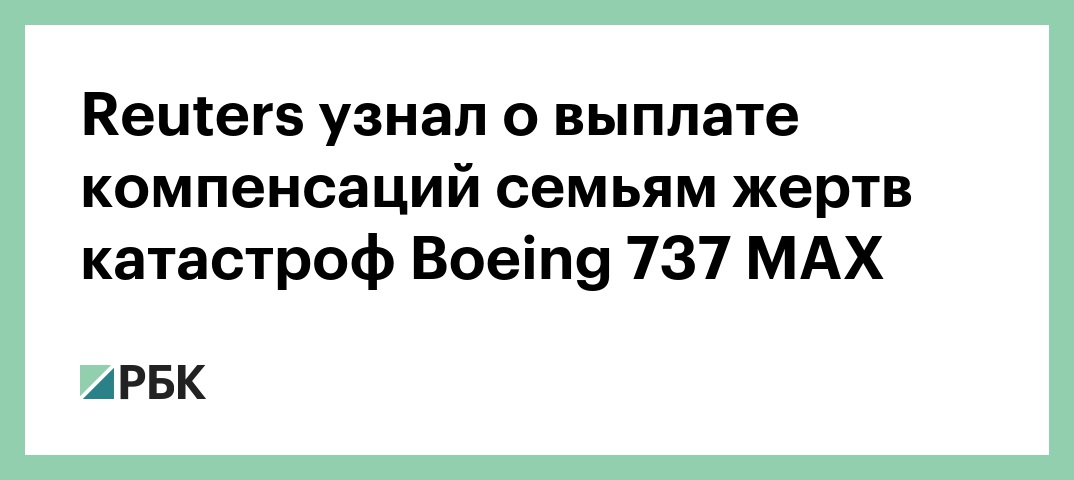 Boeing выплатит компенсации семьям жертв катастрофы Boeing 737 MAX в Индонезии и Эфиопии, сообщает Reuters.