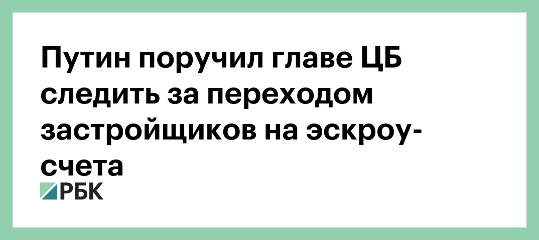 Центральный банк России должен наблюдать за переходом застройщиков на проектное финансирование с использованием эскроу-счетов, заявил президент Владимир Путин на встрече с главой ЦБ Эльвирой Набиуллиной. Стенограмма со встречи президента с главой ЦБ опубликована на сайте Кремля.