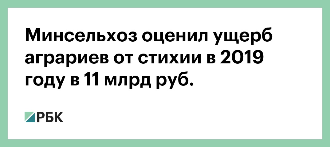 Минсельхоз оценил ущерб аграриев от стихии в 2019 году в 11 млрд руб.