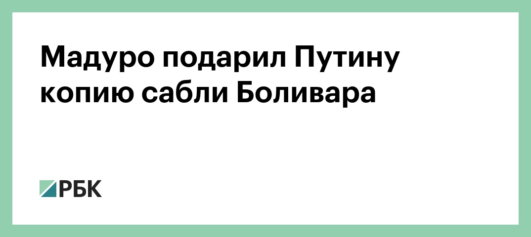 Президент Венесуэлы Николас Мадуро подарил президенту России Владимиру Путину копию сабли героя-освободителя Венесуэлы Симона Боливара в среду на встрече двух лидеров. Об этом глава Венесуэлы сообщил на своей странице в Twitter.