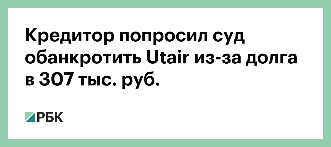 Исковое заявление компания направила 27 сентября. Она ранее уже обращалась в суд с требованием признать авиакомпанию должником: в прошлый раз, в марте, компания делала это совместно с другими кредиторами, однако тогда суд удовлетворить иск отказался. Сумма исковых требований составляла 1,5 млн руб. В тот раз в авиакомпании, как отмечает ТАСС, прокомментировали иск, отметив, что для Utair не составляет проблемы выплатить эту сумму, однако «справедливость такого решения является предметом арбитражного разбирательства».