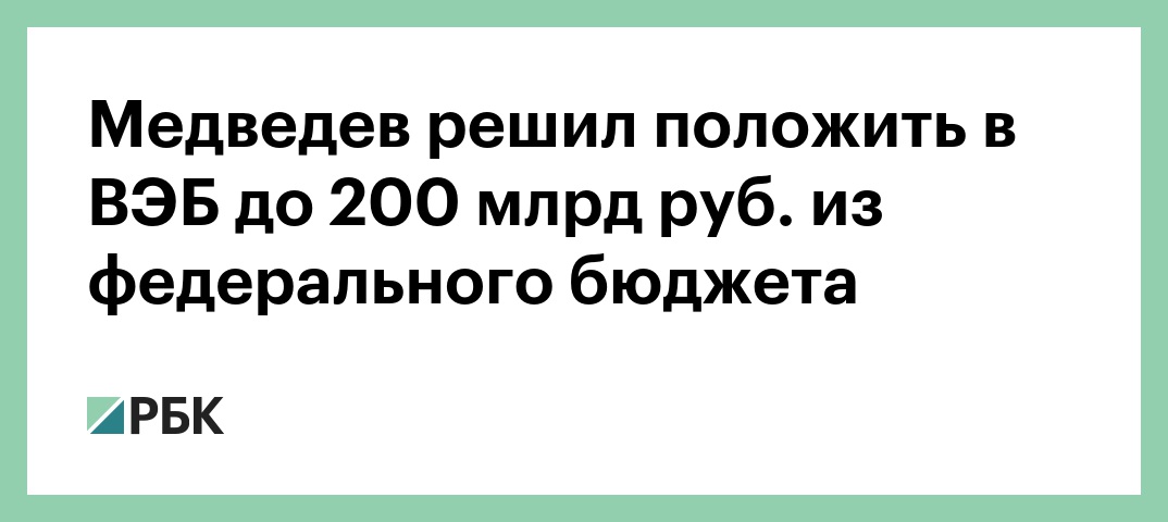 Медведев решил положить в ВЭБ до 200 млрд руб. из федерального бюджета