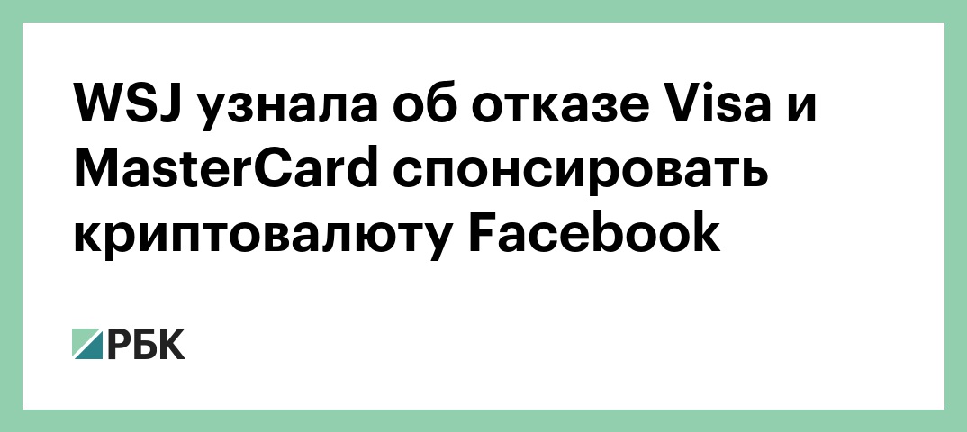 WSJ узнала об отказе Visa и MasterCard спонсировать криптовалюту Facebook