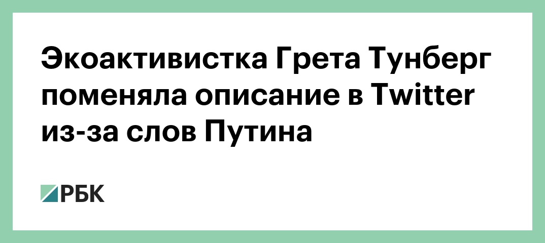 Шведская 16-летняя экоактивистка Грета Тунберг поменяла описание в своем аккаунте в Twitter, после того как российский президент Владимир Путин поделился своим мнением по поводу ее выступления в ООН.