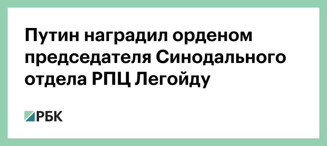 Президент России Владимир Путин наградил орденом Дружбы председателя Синодального отдела Русской православной церкви (РПЦ) по взаимоотношениям церкви с обществом и СМИ, а также врио пресс-секретаря патриарха Кирилла Владимира Легойду. Соответствующий указ размещен на официальном интернет-портале правовой информации.