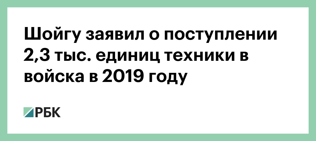 В 2019 году российская армия получила более 2,3 тыс. единиц новой и модернизированной техники. Об этом заявил министр обороны Сергей Шойгу, говорится в Twitter военного ведомства.