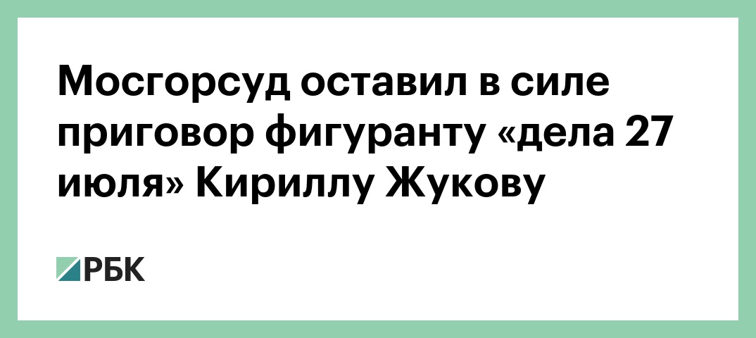 «Приговор Кириллу Жукову оставили без изменений», — заявили РБК в пресс-службе суда.