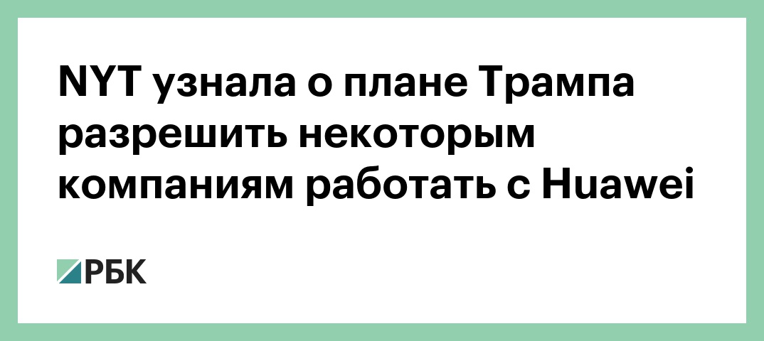 Как рассказали собеседники издания, согласие на выдачу лицензий дал на прошлой неделе президент США Дональд Трамп. При этом, отмечается газета, он цитировал неких экспертов, которых не называл по имени и не уточнял, какие именно технологии американские компании смогут передавать Huawei. Разрешение на торговлю с Huawei будет распространяться на товары, которые не затрагивают национальной безопасности страны.