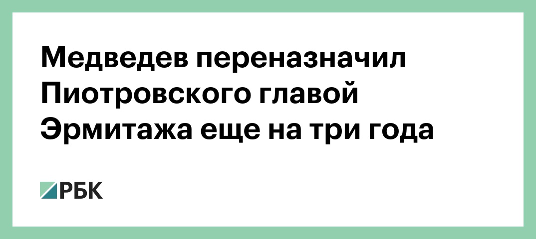 «Назначить Пиотровского Михаила Борисовича генеральным директором федерального государственного бюджетного учреждения культуры «Государственный Эрмитаж» на срок три года, освободив его от занимаемой должности», — следует из текста распоряжения.