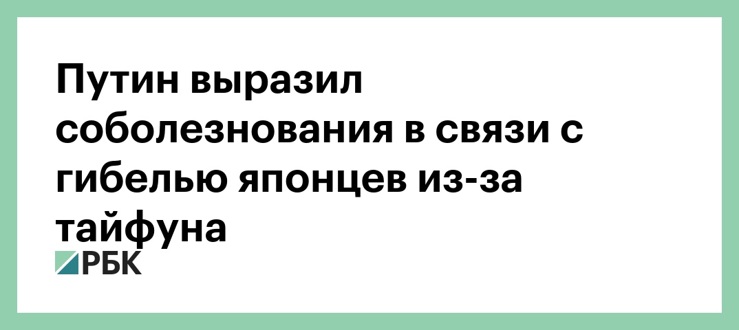 Президент России Владимир Путин выразил соболезнования премьер-министру Японии Синдзо Абэ в связи с гибелью граждан из-за тайфуна. Об этом сообщается на сайте Кремля.