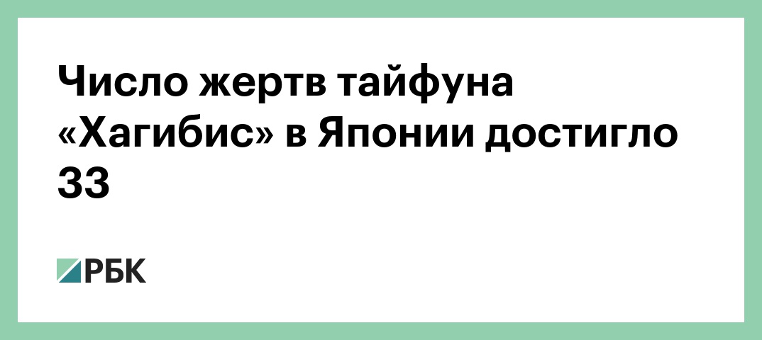 Число жертв разрушительного тайфуна «Хагибис», обрушившегося на Японию, достигло 33. Об этом сообщает агентство Kyodo. Пропавшими без вести числятся как минимум 19 человек, а общее число людей, получивших травмы, возросло до 180 человек.