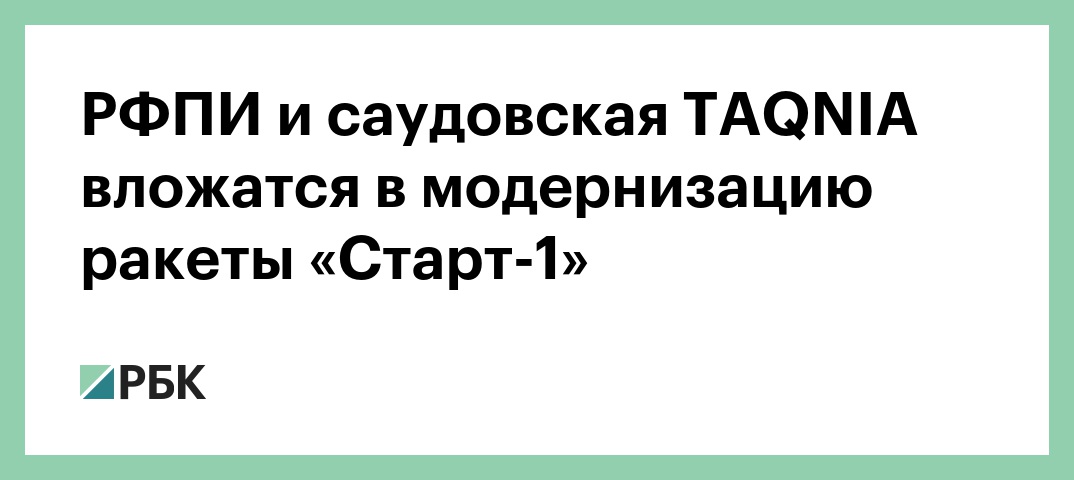 Российский фонд прямых инвестиций (РФПИ) и саудовская инвестиционная компания TAQNIA объявили о сотрудничестве по проекту развития коммерческого использования отечественной ракеты-носителя «Старт-1». Об этом говорится в релизе РФПИ, поступившем в РБК.