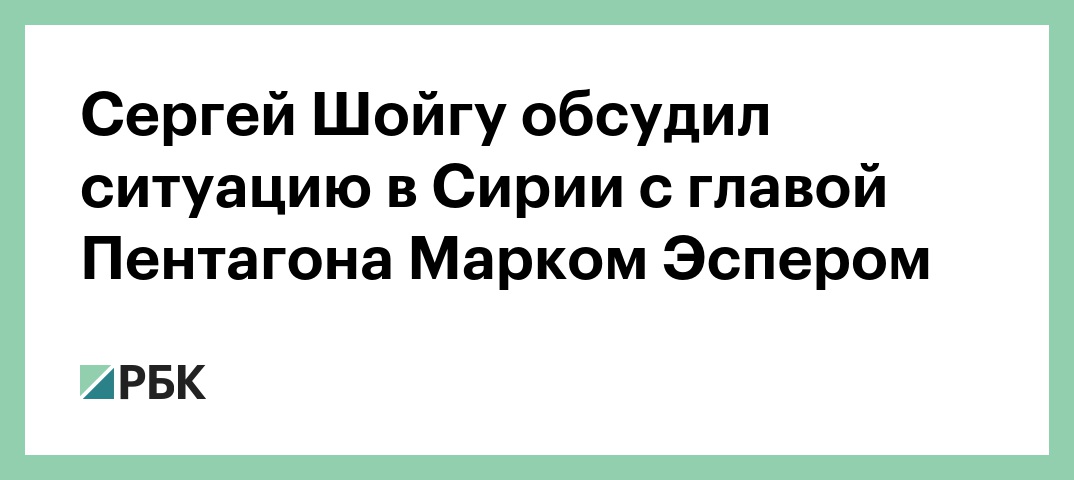 Сергей Шойгу обсудил ситуацию в Сирии с главой Пентагона Марком Эспером
