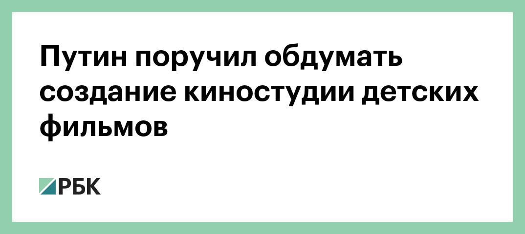 Российское правительство рассмотрит вопрос создания государственной киностудии детских и юношеских фильмов. Соответствующее поручение дал кабмину президент Владимир Путин, текст которого опубликован на сайте Кремля.
