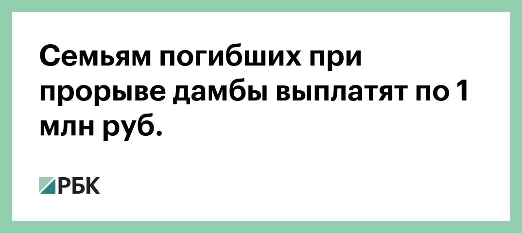 Семьям погибших при прорыве дамбы выплатят по 1 млн руб.