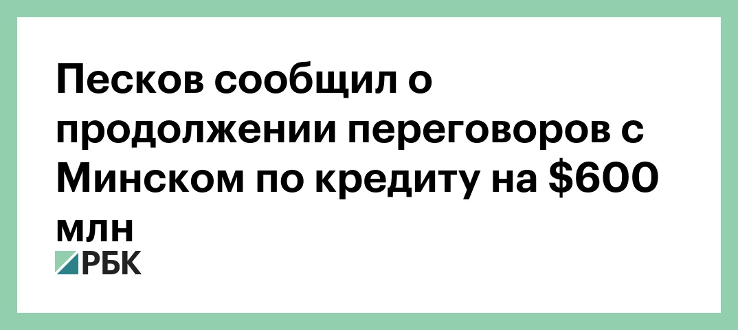 Пресс-секретарь президента Дмитрий Песков прокомментировал заявление Минфина Белоруссии о том, что Минск больше не запрашивает у Москвы госкредит на $600 млн, передает корреспондент РБК.