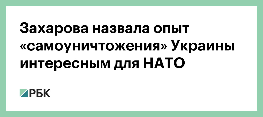 «Опыт самоуничтожения» Украины, длящегося на протяжении последних 30 лет, будет интересным для НАТО, заявила официальный представитель российского МИДа Мария Захарова на своей странице в Facebook. Таким образом она ответила на высказывание министра обороны Украины Андрея Загороднюка, заявившего, что пятилетний опыт «войны с Россией» может заинтересовать альянс.