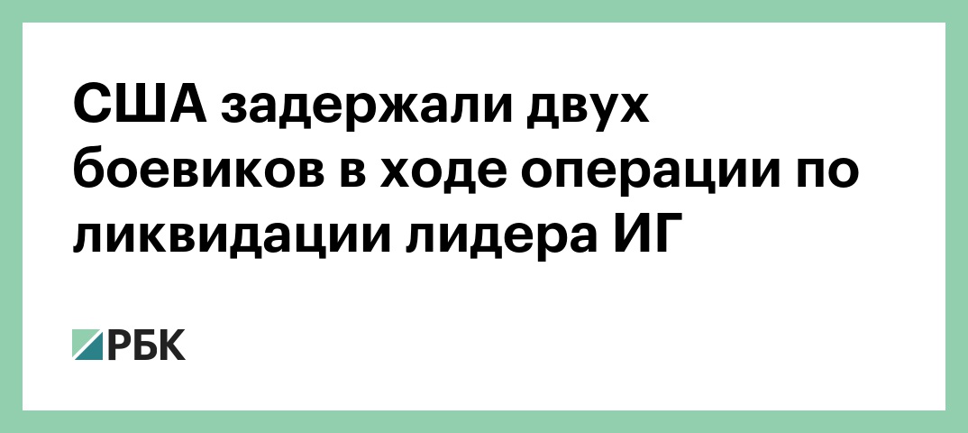 Американские военные задержали двух боевиков террористической организации «Исламское государство» (ИГ, запрещена в России) во время спецоперации по ликвидации их главаря в Сирии. Об этом сообщил глава Объединенного комитета начальников штабов Вооруженных сил США Марк Милли на брифинге, трансляция которого велась на телеканале C-Span.