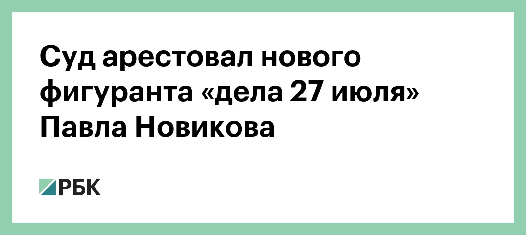 Басманный суд арестовал нового фигуранта «дела 27 июля» Павла Новикова. Об этом РБК сообщили в пресс-службе суда. Новикова арестовали на два месяца, до 29 декабря.