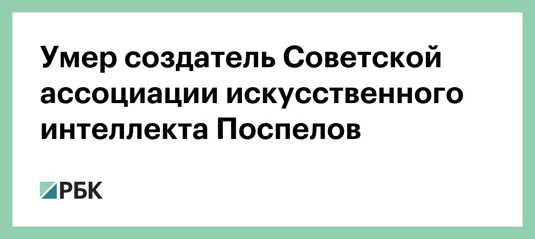Об этом сообщили РБК в дирекции Российской ассоциации искусственного интеллекта (РАИИ, основана Поспеловым в 1989 году под названием Советская ассоциация искусственного интеллекта).
