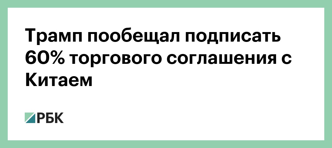 Трамп пообещал подписать 60% торгового соглашения с Китаем