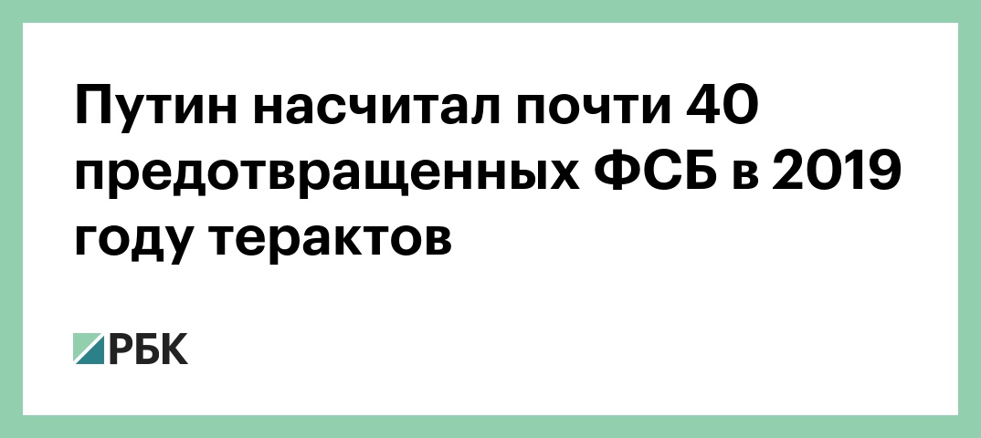 Путин насчитал почти 40 предотвращенных ФСБ в 2019 году терактов