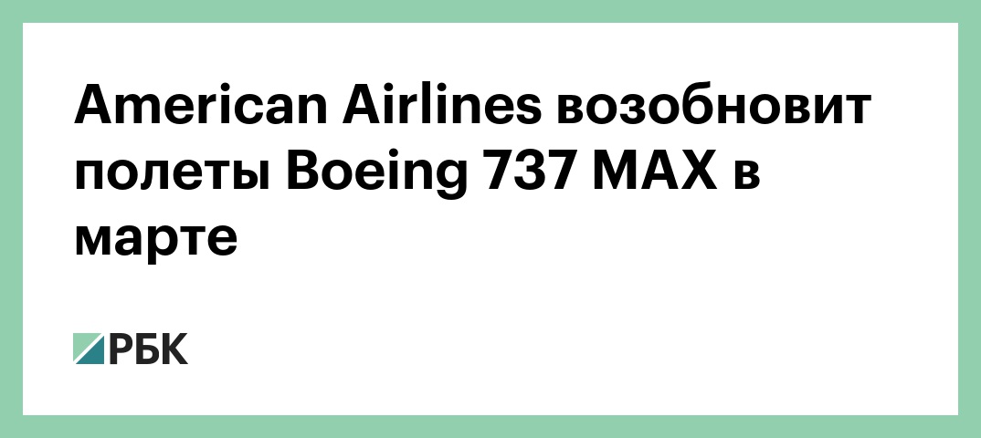 Авиакомпания American Airlines сообщила о возобновлении полетов Boeing 737 MAX с марта 2020 года. Об этом говорится на сайте компании.