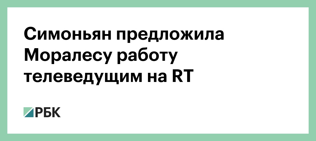 Главный редактор RT и МИА «Россия сегодня» Маргарита Симоньян предложила Эво Моралесу, ранее объявившему об отставке с поста президента Боливии, работу телеведущим на испанском RT. Об этом она сообщила на своей странице в Twitter.