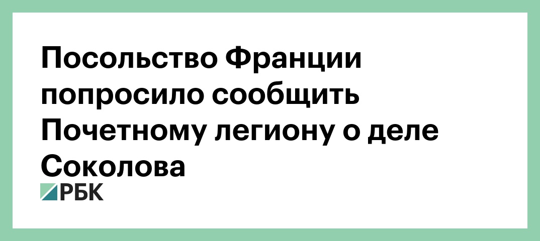 Посольство Франции попросило сообщить Почетному легиону о деле Соколова