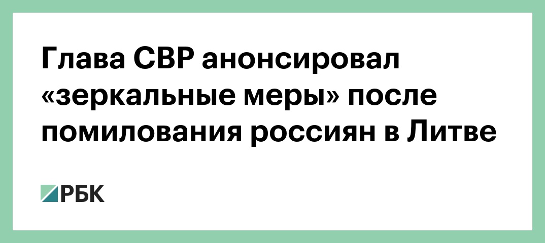 В ответ на решение президента Литвы Гитанаса Науседы помиловать двух россиян, осужденных в 2017 году за шпионаж, власти России примут зеркальные меры. Об этом заявил журналистам глава Службы внешней разведки (СВР) Сергей Нарышкин.