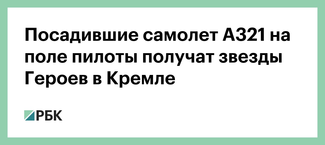 Посадившие самолет А321 на поле пилоты получат звезды Героев в Кремле