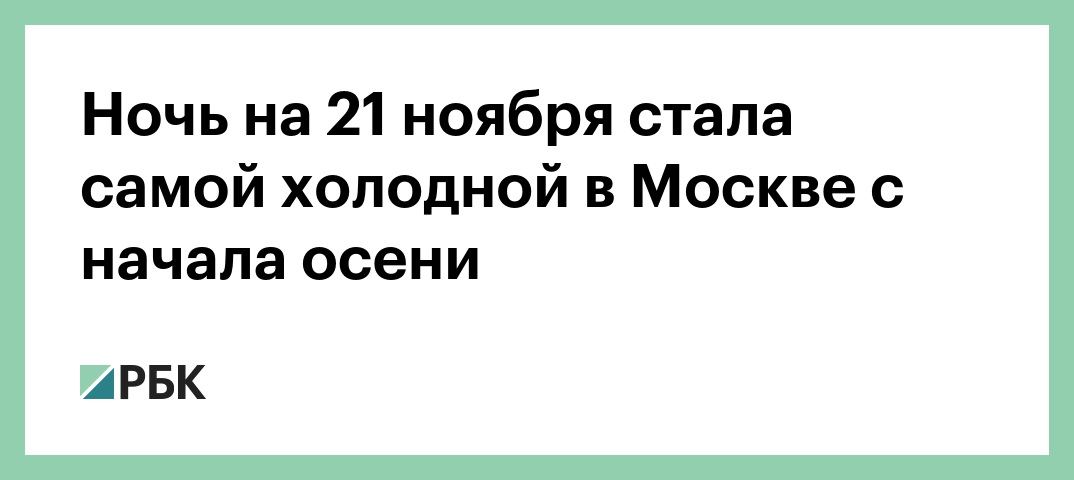 Ночь на 21 ноября стала самой холодной с начала осени в столице. Об этом РБК сообщил ведущий специалист центра погоды «Фобос» Евгений Тишковец.