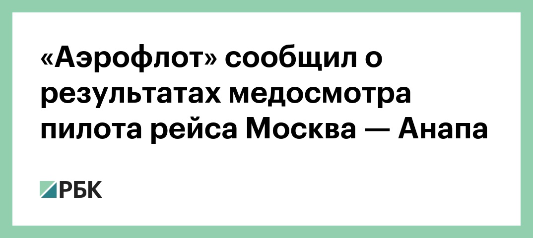 «Аэрофлот» сообщил о результатах медосмотра пилота рейса Москва — Анапа