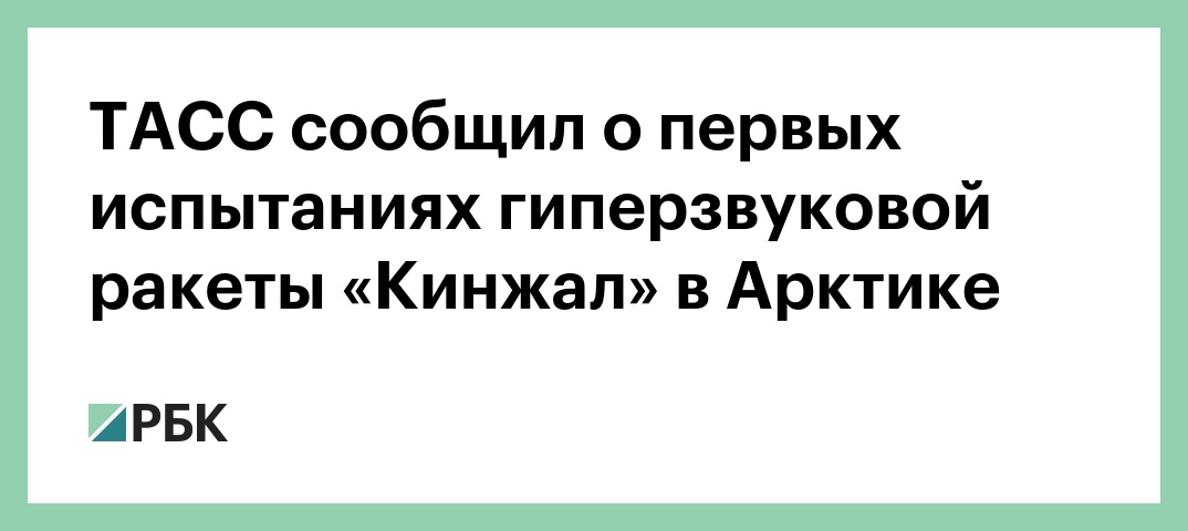ТАСС сообщил о первых испытаниях гиперзвуковой ракеты «Кинжал» в Арктике