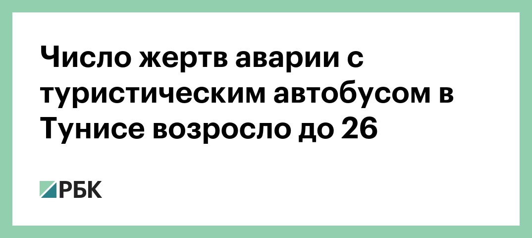 Число погибших при аварии туристического автобуса в Тунисе возросло до 26 человек, сообщает радиостанция Mosaique FM со ссылкой на официального представителя Минздрава страны. Ранее было известно о 24 погибших и 18 раненых.