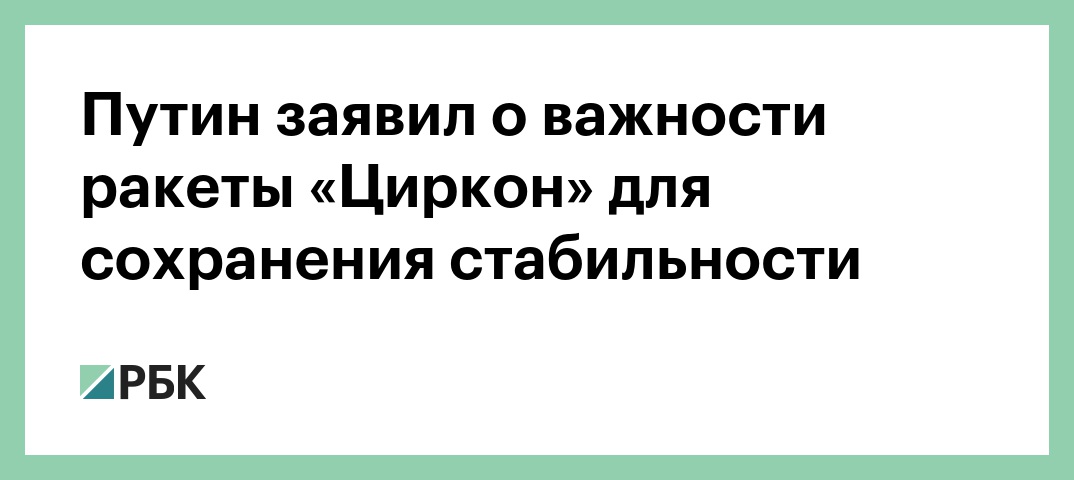 Российская гиперзвуковая ракета «Циркон» важна для сохранения стратегической стабильности, заявил президент России Владимир Путин на совещании по развитию Военно-морского флота, сообщает корреспондент РБК.