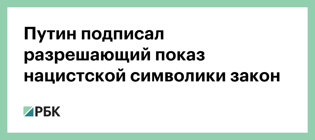 Президент Владимир Путин подписал закон, который разрешает демонстрировать нацистскую и экстремистскую символику при условии осуждения экстремизма и нацизма. Соответствующий документ опубликован на портале правовой информации.