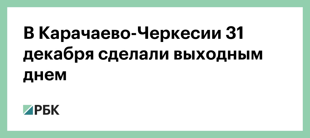 Отмечается, что органам местного самоуправления республики выходной день рекомендовали перенести с субботы, 28 декабря. Это касается муниципальных служащих, работников предприятий, находящихся в ведении органов местного самоуправления Карачаево-Черкесии.