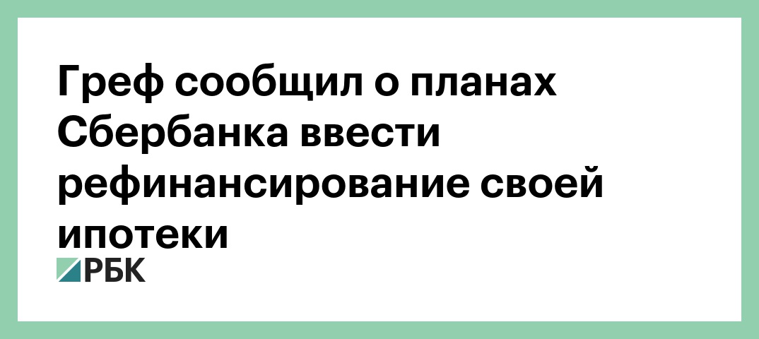 По словам Грефа, сейчас банк работает над этим продуктом, а ввести рефинансирование для своих клиентов планирует в 2020 году.