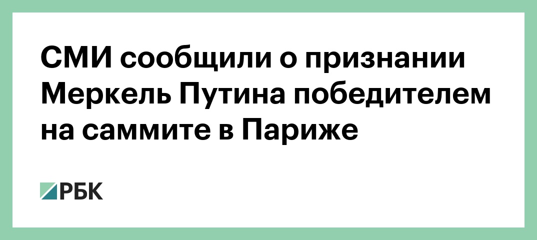 По окончании саммита в «нормандском формате» в Париже 9 декабря канцлер ФРГ Ангела Меркель назвала президента России Владимира Путина победителем. Об этом пишет газета «Коммерсантъ».