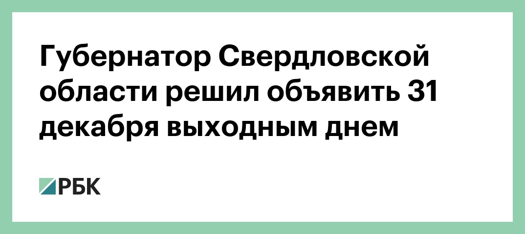 Губернатор Свердловской области решил объявить 31 декабря выходным днем