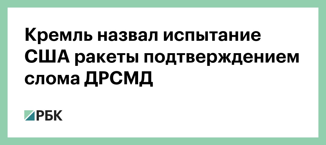 Песков напомнил, что Россия неоднократно заявляла о подготовке США к нарушению положений договора. Он при этом добавил, что не может комментировать испытание ракеты «с технической точки зрения, с точки зрения тактико-технических характеристик этой ракеты».