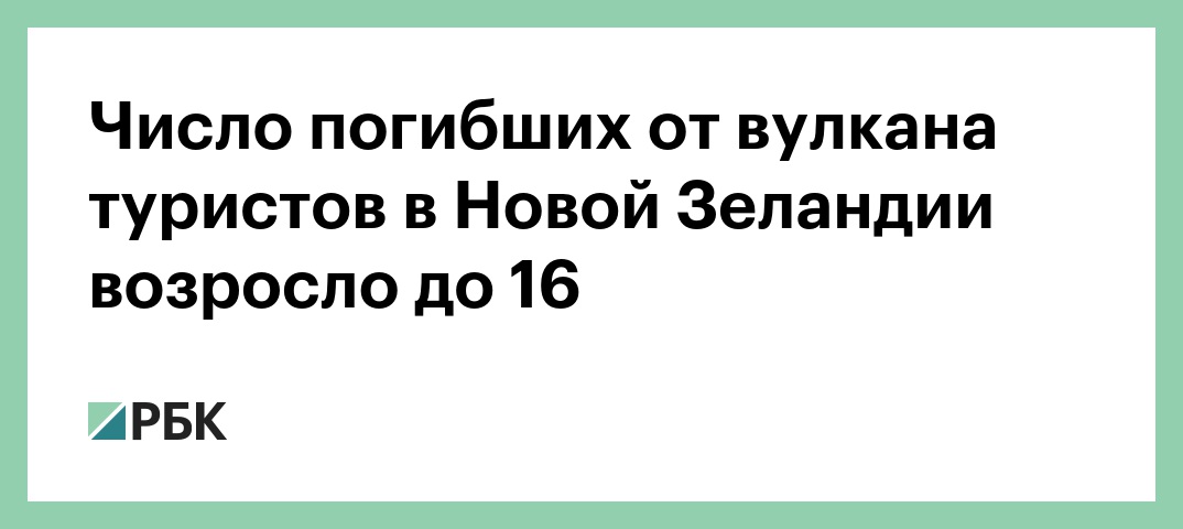 По последним данным, число погибших от извержения вулкана на острове Уайт-Айленд на севере Новой Зеландии, которое произошло 9 декабря, возросло до 16 человек, после того как в больнице скончался еще один пострадавший. Об этом сообщает Reuters со ссылкой на полицию.